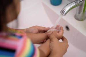 It is a great idea to talk to kids of all ages about germs and why we shouldn’t put everything in our mouths in general. With very young kids you don’t need to explain the details of the current coronavirus pandemic specifically, it is too complex for them to understand. Older children likely have heard about it, so calmly sharing factual information can be helpful. Remember to be honest and age appropriate with kids and reassure them about all the ways you and other adults in their lives are helping to keep them safe and healthy. It feels good to know that there are concrete things you can do in a scary situation. Kids need this as well. Helping your children learn to practice good hand hygiene can both help them stay healthy and give them a sense of empowerment.