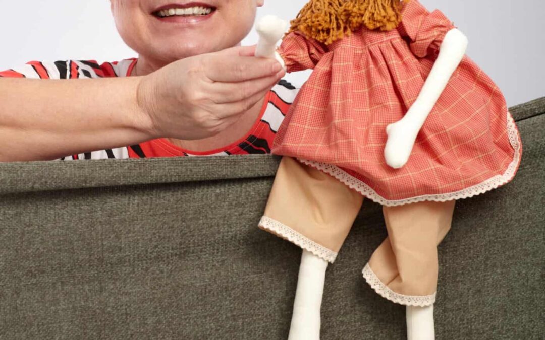 Elderly lady playing puppet show