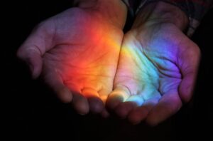 Visualize one color leaving your body with each exhale and the healing light filling your body with each inhale. Allow the light to come in and descend starting at the top of your head slowly down to the rest of your body. All the way to your fingertips and toes.